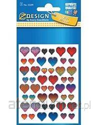 Naklejki na folii w 3D w kształcie kolorowych mieniących się serduszek.