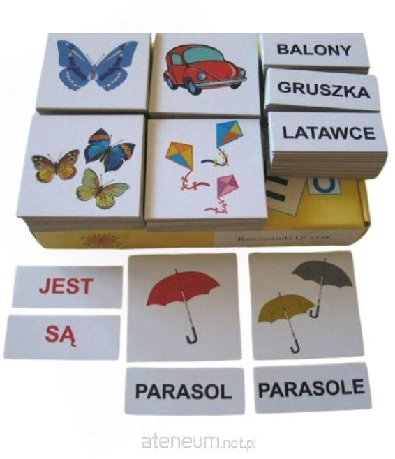 Zestaw ten służy do uświadamiania dziecku zmiany formy wyrazu w przypadku pojawienia się większej ilości elementów np.: PIES - PSY, poprzez podanie odpowiedniej plakietki, etykietki.