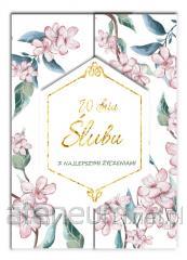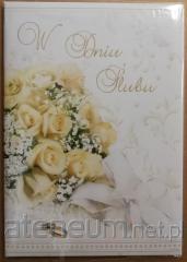 Wielostronicowa pamiątka ślubna w twardej oprawie. Z miejscem na fotografię nowożeńców, ich imiona, datę zwarcia małżeństwa. Pamiątka zawiera fragmenty Pisma Świętego, słowa papieży: Jana Pawła II i Franciszka oraz wiele innych godnych zapamiętania cytatów dotyczących małżeństwa i miłośc