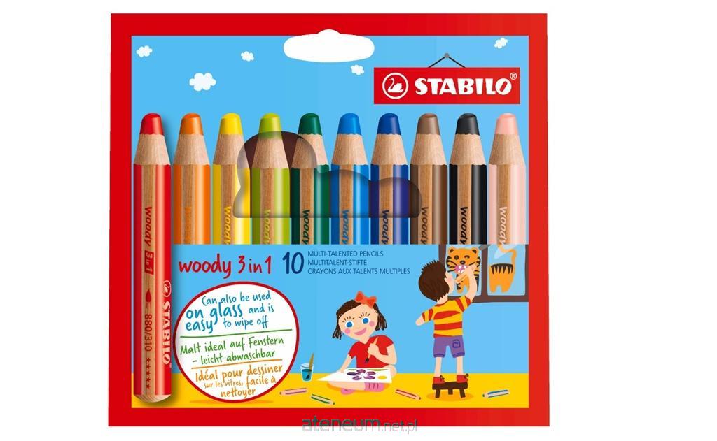 3 w 1: kredka, kredka akwarelowa i kredka woskowa. Duża średnica ułatwia trzymanie a grafit w rozmiarze XXL odpowiada aż 8 standardowym kredkom. Wyjątkowo odporne na złamania dzięki dużej ilości pigmentów zawartych w rdzeniu co dodatkowo sprawia, że malowana powierzchnia jest pokrywana z dużą łatwością i widoczna nawet na ciemnym tle. Można nimi rysować również po gładkich powierzchniach, np. szkle. Idealne dla dzieci! Kartonowe etui zawierające 10szt.