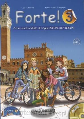 Forte to oryginalny i nowatorski kurs do nauki języka włoskiego, przeznaczony dla dzieci w wieku od 7 do 11 lat, które zaczynają przygodę z tym językiem. Trzecia część odpowiada poziomowi A2. Kurs jest odpowiedni również dla dzieci sześcioletnich, które poznały już alfabet i mają kontakt z językiem włoskim. Podręcznik i zeszyt ćwiczeń są zawarte w jednym tomie. Trzecia część serii składa się z siedmiu rozdziałów: rozpoczyna się rozdziałem wprowadzającym, w sześciu kolejnych motywem przewodnim jest sympatyczna historia opowiadająca o przygodach pięciorga dzieci różnych narodowości oraz ich przyjaciół. Podręcznik zawiera wiele ćwiczeń z rozumienia ze słuchu i formułowania wypowiedzi ustnej, a także piosenki i wierszyki. Na końcu każdego rozdziału znajduje się część poświęcona utrwalaniu słownictwa, z którym uczeń miał okazję zapoznać się w danym rozdziale. Zabawy i gry językowe motywują do nauki, a liczne ćwiczenia pozwalają na utrwalenie materiału. Książka zawiera wyjaśnienia zasad gramatyki włoskiej wraz z wieloma przykładami. Bogaty materiał językowy, systematyczne powtarzanie wiadomości i umiejętności, spiralne podejście do nauki języka sprawiają, że seria Forte! będzie przydatna w pracy z różnymi grupami uczniów.