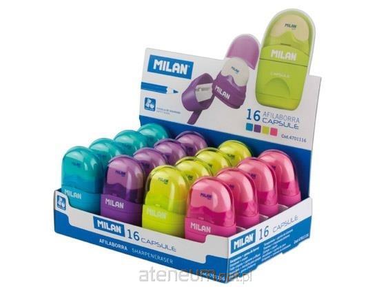Fantazyjne połączenie temperówki i gumki w jednym. Z jednej strony pojedyncza temperówka z bezpiecznym ostrzem ze stali węglowej. Z drugiej miękka gumka syntetyczna, a po środku pojemnik na ścinki. Wszystko w żywych kolorach i nowoczesnym designie. DOSTĘPNY W 4 KOLORACH: NIEBIESKIM, FIOLETOWYM, ZIELONYM I RÓŻOWYM. PUDEŁKO 16 SZT.