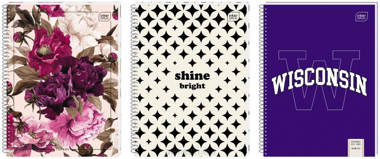 Format: A4. Liczba kartek: 50. Zadruk w kratkę. Ostre rogi. Pojedyncza spirala wkręcana. Otwory do segregatora. Perforacja wzdłuż grzbietu, ułatwiająca wyrywanie kartek. Spirala po długim boku.