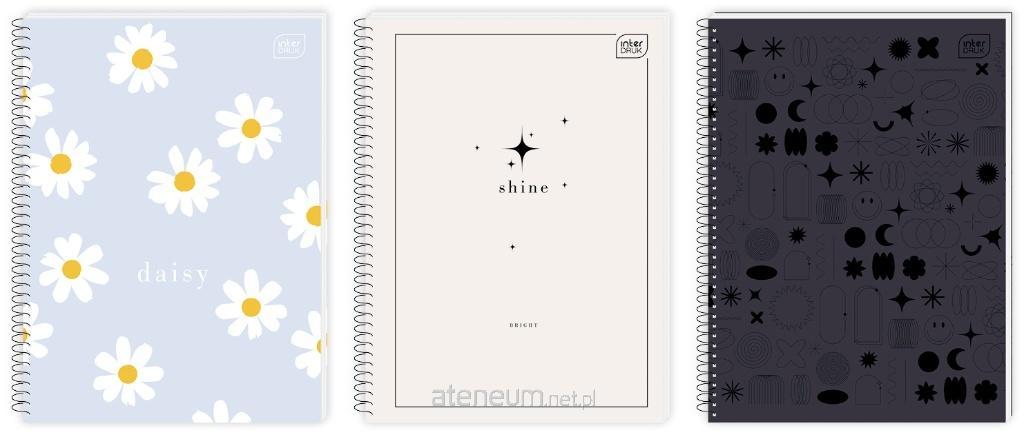 Format: A5. Liczba kartek: 50. Zadruk w kratkę. Ostre rogi. Pojedyncza spirala wkręcana. Otwory do segregatora. Perforacja wzdłuż grzbietu, ułatwiająca wyrywanie kartek. Spirala po długim boku.