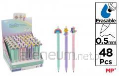 Zakończenie i skuwka w kolorze tuszu Transparentny, pomarańczowy korpus Wentylowana skuwka Końcówka pisząca z węglika wolframu Średnica końcówki 0,8 mm Szerokość linni pisania 0,4 mm Długość linii pisania do 3 500 m Atrament na bazie oleju: trwały, woodoodporny, szybkoschnący (