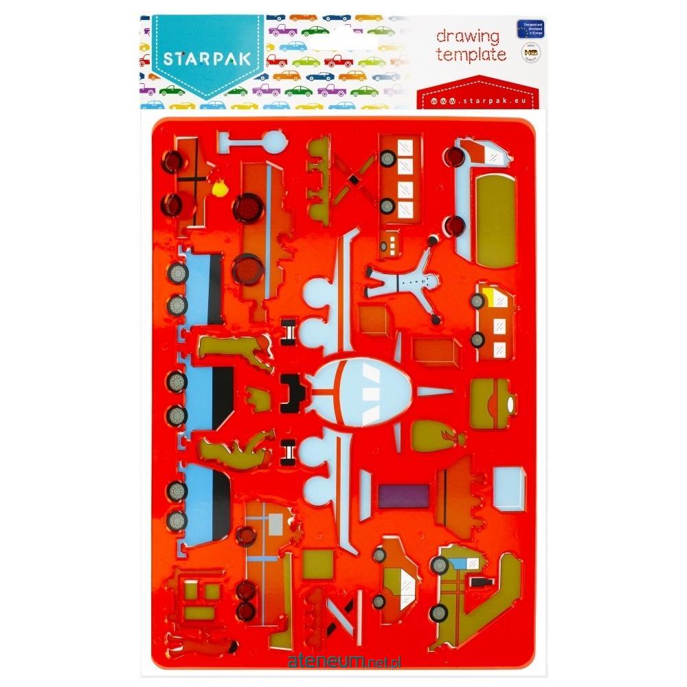 Szablon z kolekcji Starpak z różnymi rodzajami pojazdów. Szablon umożliwia dzieciom rysowanie precyzyjnych kształtów a następnie zabawę, np. kolorowanie. Wykonany z trwałego przezroczystego tworzywa. Zapoznaj się również z innymi produktami Starpak! Produkt pakowany w folię z zawieszką