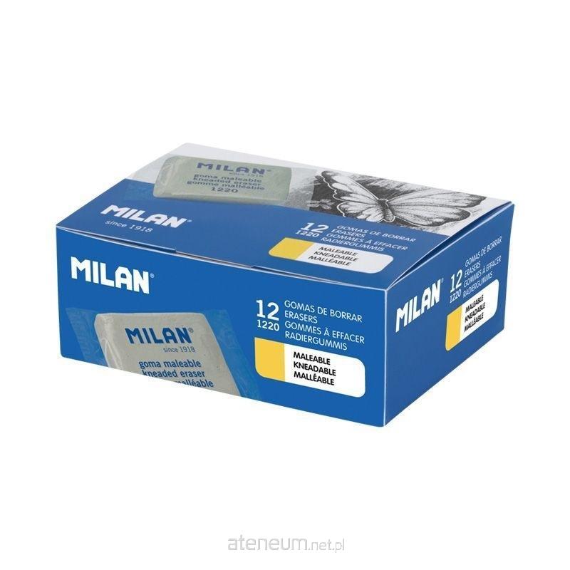 Chlebowa, formowalna gumka z niewulkanizowanego kauczuku o dużej zdolności pochłaniania. Zalecana do wycierania linii wykonanych za pomocą węgla, pasteli i grafitu. Wyciera w czysty sposób i bez wiórek. Instrukcja użytkowania: wybierz część gumki i oddziel ją od reszty, tworząc małą masę. Nakładaj z delikatnym naciskiem na linię, którą chcesz usunąć. Pakowana pojedynczo w folię. 12 sztuk w opakowaniu. Rozmiar gumki: 3,7 x 2,8 x 1 cm. Gumki MILAN produkowane są w Hiszpanii od 1918 roku.