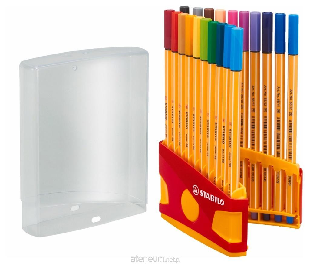 Uniwersalny cienkopis do pisania, podkreślania, kreślenia i kolorowania. Mocna, oprawiona w metal końcówka jest odporna na złamania i rozwarstwienia, co gwarantuje wysoki komfort pisania aż do całkowitego wyczerpania tuszu. Grubość linii 0,4 mm. Wentylowana skuwka umożliwia oddychanie w przypadku nagłego połknięcia. Plastikowe, sztywne pudełko umożliwiające łatwy wybór kolorów o wymiarach: Zawiera 20 szt. w kolorach: 22, 26, 32, 33, 36, 40, 41, 44, 45, 46, 50, 51, 53, 54, 55, 56, 57, 58, 89, 96.