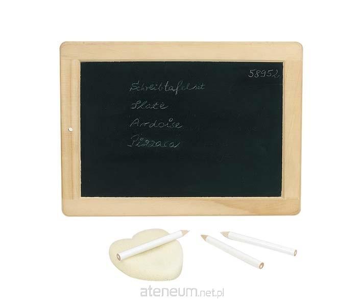 Dwustronna tablica do pisania kredą lub kredkami. W zestawie znajduje się także gąbka.