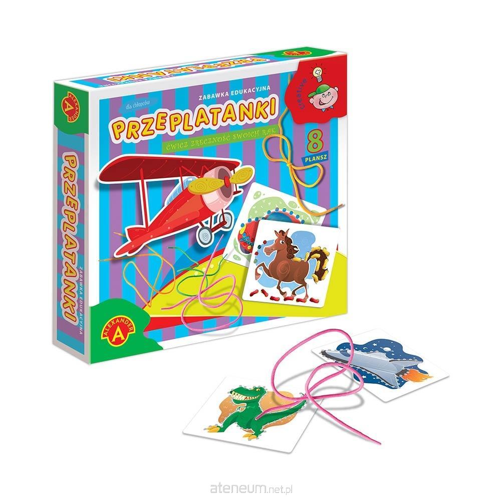 Przeplatanki to zabawa polegająca na przeplataniu kolorowego sznurka przez dziurki umieszczone na obrazku. Zabawka ćwiczy zręczność, cierpliwość, precyzję. Jest doskonałym wstępem dla dzieci do nauki wiązania butów oraz kokardek. Zestaw zawiera 8 dziurkowanych obrazków.