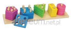 Zestaw zawiera 102 elementy do tworzenia kształtów z kolorowych figur. Za pomocą młotka należy przybijać je do korkowej planszy, a powstaną obrazki, jakie tylko podpowie wyobraźnia.