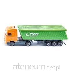 Zgodnie z najnowszymi przepisami bezpieczeństwa materiał sypki może być przewożony już tylko ciężarówkami z plandeką. SIKU wprowadza te aktualne przepisy w życie również w pokoju dziecięcym. Ciągnik samochodowy Mercedes-Benz Actros ciągnie za sobą trzyosiową przyczepę wywrotkę z ruchomym nadwoziem samowyładowczym i przyczepianą plandeką dachową z elastycznego tworzywa sztucznego. Tylna klapa nadwozia samowyładowczego jest ruchoma. Można ją otworzyć bez względu na to, czy plandeka dachowa jest założona, czy też nie.