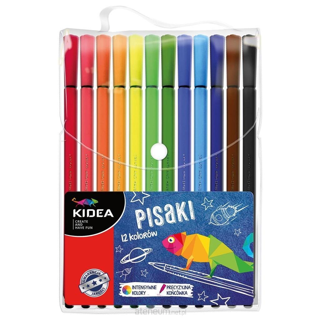 Zestaw 12 pisaków w wygodnym etui zapinanym na klips. Intensywne kolory gwarantują wykonanie efektownych prac. Cienka końcówka pozwala na precyzyjne rysowanie i kolorowanie. W zestawie znajduje się zabawna kolorowanka.