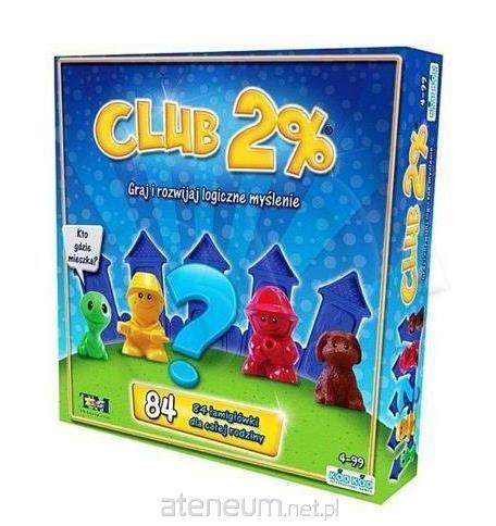 Graj i rozwijaj logiczne myślenie. Wciągająca zabawa dla całej rodziny. Inspiracją powstania gry Club 2% było zastosowanie tej samej logiki rozumowania, która jest podstawą zagadki Einsteina. Club 2% stawia przed graczami ekscytujące zagadki, które zachęcają do logicznego myślenia krok po kroku. Kto gdzie mieszka? Wybierz kartę z zadaniem z zestawu 84 kart o wzrastającej trudności i wykorzystaj podpowiedzi, żeby ustalić, jak umieścić ludziki i zwierzęta w domkach. Podpowiedzi są pokazywane w formie prostych symboli, opracowanych specjalnie po to, aby a łatwy sposób rozwijać umiejętności matematycznego myślenia i rozwiązywania problemów, przy czym nie wymagają umiejętności czytania. Korzystanie z podpowiedzi zachęca do rozróżnienia pomiędzy istotnymi, a drugorzędnymi informacjami. Karka po karcie, pracując kreatywnie, stopniowo opanujesz procesy logicznej dedukcji, jednocześnie bawiąc się. Uważasz, że zagadka jest rozwiązana? Rozwiązanie znajdziesz na odwrocie karty: czy wszyscy są na właściwych miejscach? Zawartość pudełka: 5 plastikowych domków 10 trójwymiarowych plastikowych pionków do gry (5 ludzików i 5 zwierząt) 84 karty z zadaniami (zawierające zagadki o różnym stopniu trudności) instrukcja obsługi. Gra przeznaczona: dla 2 do 4 graczy w wieku powyżej 4 lat.