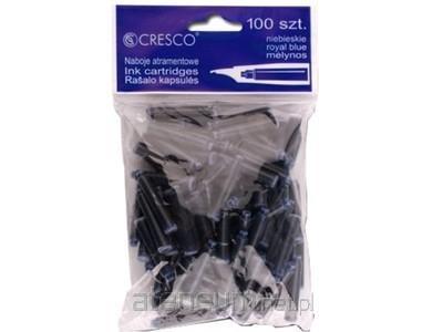 Naboje atramentowe marki CRESCO wyposażone są w najwyższej jakości atrament w kolorze niebieskim. Zapewniając najwyższy standard pisania niebieski szybkoschnący atrament rekomendowany dla osób piszących lewą ręką formuła poprawiającą jakość pisania piór kulkowych zasilanych standardowymi nabojami atramentowym zapachowym w ośmiu różnych zapachach.Wszystkie naboje atramentowe marki CRESCO można wykorzystywać do tradycyjnych piór wiecznych. 100 sztuk w opakowaniu
