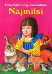 Książki tej autorki zna niejedno pokolenie młodych czytelników. Ewa Szelburg-Zarembina należy do grona najbardziej lubianych pisarek dziecięcych. "Najmilsi", to zbiór 10 opowiadań, w których główną bohaterką jest mała Renia. Dziewczynka ma wyjątkowe szczęście do przygód ze zwierzętami. I tak, opiekuje się rannym zajączkiem, którego przyniósł jej gajowy Magiera, pielęgnuje wróbelka i skaleczonego jeża. Poznaje też sowę o ogromnych, tajemniczych oczach - jej się trochę boi, rudą wiewiórkę, którą sadza koło kałamarza i... wiele, wiele innych ciekawych zwierząt, z którymi ma dużo perypetii.