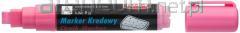Marker z płynną kredą, do pisania po tablicach czarnych, białych, po szkle i powierzchniach plastikowych. Zmywalny wodą, jak zwykła kreda np. tradycyjną. Nasączalne końcówki fibrowe, bezwonny tusz pigmentowy, nie zawiera xylenu. Końcówka ścięta 4,45 mm, kolor srebrny.