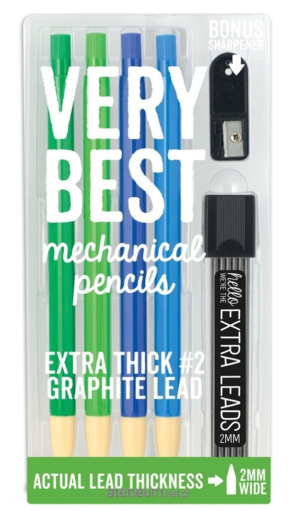 Zestaw 4 mechanicznych ołówków z grubym wkładem. 4 ołówki, różne kolory oprawek. 12 wkładów do uzupełnienia + temperówka. Gruby wkład 2mm, 2HB Mechaniczne Ołówki o wkładach tak grubych, że można je natemperować. Pisanie i rysowanie nie jest takie samo w przypadku tych mechanicznych ołówków. Mają one wyjątkowo grube wkłady o średnicy 2 mm, dzięki czemu są wytrzymałe i będą działać przez długi czas. Każdy zestaw zawiera 4 ołówki mechaniczne w odcieniach różowego i fioletowego, 12 dodatkowych wkładów do uzupełnienia i temperówkę. Zestaw Mechanicznych Ołówków . Zestaw 4 Mechanicznych Ołówków. 4 ołówki, różne kolory oprawek. 12 wkładów do uzupełnienia + temperówka. Gruby wkład 2mm, 2HB