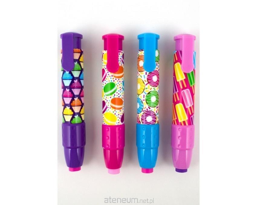 Gumki do ścierania ze słodkim akcentem. Co może być bardziej słodkiego niż lizaki, ciasteczka, babeczki i pączki? Mechaniczkne Gumki do Ścierania Słodycze to super zabawne i praktyczne gumki zamknięte w wytrzymałej, łatwej do trzymania plastikowej oprawie, która sprawia, że wycieranie ... jest naprawdę słodkie! Wszystko, czego potrzebujesz, to kilka kliknięć i jesteś na dobrej drodze do wycierania błędów ołówka przy pomocy słodko wyglądających gumek. Mechaniczke Gumki do Ścierania Słodycze są dostępne w 4 stylach i kolorach. Mechaniczne Gumki do Ścierania Słodycze: Gumka mechaniczna w oprawie. 4 kolory i obrazki słodyczy na oprawie. Towar wysyłany losowo