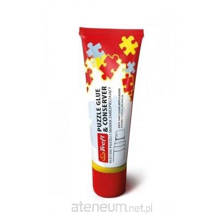 Klej w tubce z gąbką do łatwej i czystej aplikacji to środek konserwujący i klej do puzzli w jednym. Połączone za jego pomocą puzzle można z łatwością przenieść, postawić lub powiesić a ochronna powłoka zabezpiecza je przed zanieczyszczeniami. Rozprowadź klej równomiernie na całej powierzchni z obrazkiem. Zostaw do wyschnięcia. Gotowe!