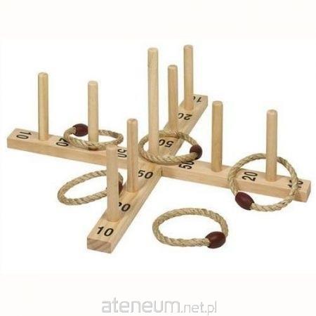 Wspaniała gra w rzucanie obręczy na patyki. Rozwija koordynację ruchową i celność. Nadaje się zarówno do pokoju jak i do ogrodu.Wykonana za naturalnych materiałów - drewna i sizalu.
