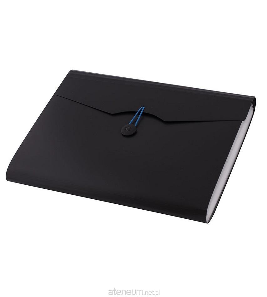 - teczka segregująca na dokumenty w formacie A4, zamykana na gumkę- wewnątrz posiada przegródki na dokumenty z wymiennymi etykietami do opisu zawartości- wykonana z mocnej folii PP- 12 przegródek