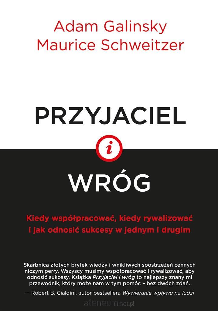W książce Przyjaciel i wróg Adam Galinsky i Maurice Schweitzer wyjaśniają, dlaczego ten spór nie trafia w sedno sprawy. My, ludzie, nie mamy wrodzonej skłonności do rywalizacji albo do współpracy; ewolucja przygotowała nas do obu tych zachowań. W każdej relacji od współpracowników, przez przyjaciół i współmałżonków, po rodzeństwo jesteśmy równocześnie przyjaciółmi i wrogami. Tylko poprzez nauczenie się, jak osiągnąć i utrzymać równowagę między tymi dwiema siłami, możemy udoskonalić swoje długotrwałe związki i z większym powodzeniem zdobywać to, czego chcemy.
