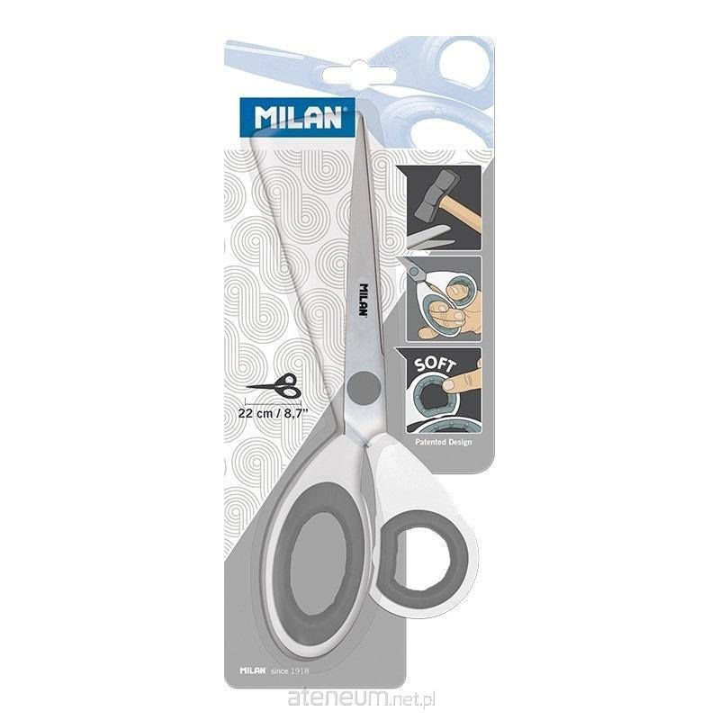 Nożyczki biurowe o długości 22 cm z ostrzem ze stali nierdzewnej. Plastikowe ergonomiczne uchwyty w środku wyściełane gumą.