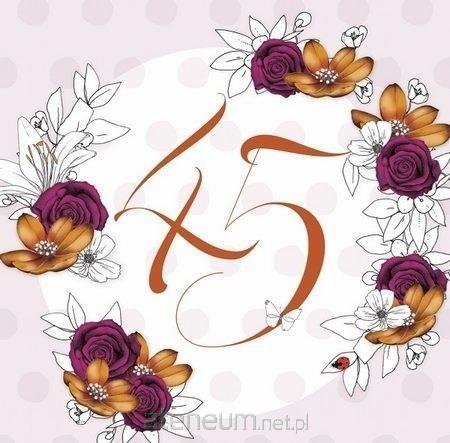 Karnet bez tekstu z kopertą, ręcznie robiony z kryształkiem Swarovski, Urodziny 45 kwiaty.