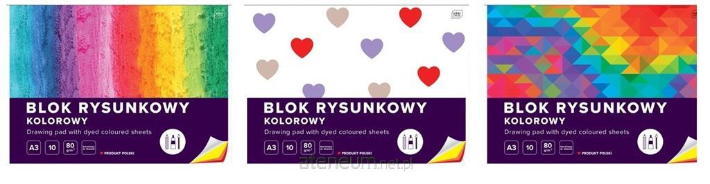 Blok rysunkowy A3/10K barwiony w masie10 sztuk w opakowaniu zbiorczym, różne wzory