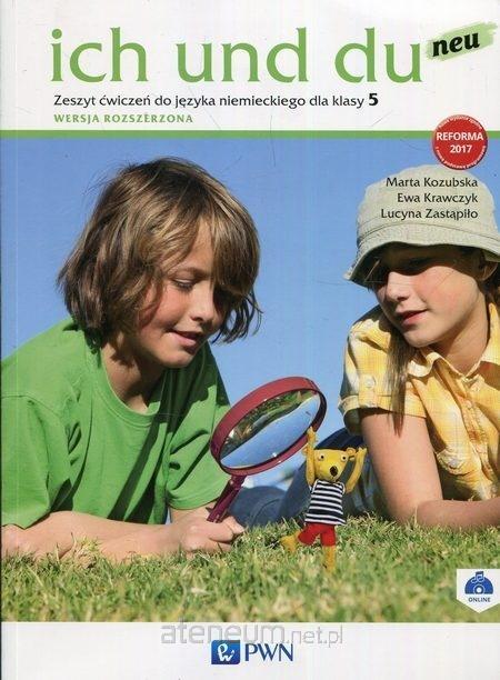 "ich und du neu . Zeszyt ćwiczeń do języka niemieckiego dla klasy 5 (wersja rozszerzona)" to publikacja przeznaczona dla nauczycieli uczących języka niemieckiego jako języka dodatkowego oraz dla szkół językowych. Bogato ilustrowane zadania o zróżnicowanym stopniu trudności umożliwiają uczniowi równomierne i kompleksowe ćwiczenie wszystkich czterech sprawności językowych. Publikacja zawiera ćwiczenia, dzięki którym uczniowie utrwalają poznane słownictwo i zagadnienia gramatyczne. Specjalna sekcja ćwiczeń jest przeznaczona dla uczniów z trudnościami w nauce spowodowanymi dysgrafią. Gry i zabawy językowe w formie materiałów do wycinania oraz dodatkowe plansze z kartami do gier służą utrwaleniu słownictwa poprzez zabawę. Dodatkowo w zeszycie ćwiczeń w każdym rozdziale jest umieszczony test (Theo prft), na podstawie którego uczniowie samodzielnie sprawdzą swoją wiedzę i zdobyte umiejętności. Dzięki sekcji Fr mein Portfolio mogą uświadomić sobie postępy w nauce i zaprezentować zdobyte umiejętności.