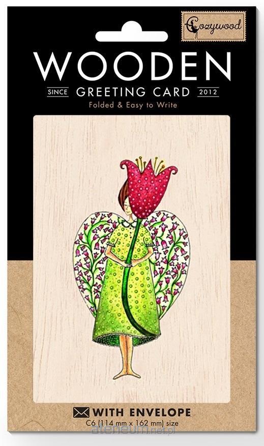 Karnet drewniany C6 + koperta Kobieta z balonem
