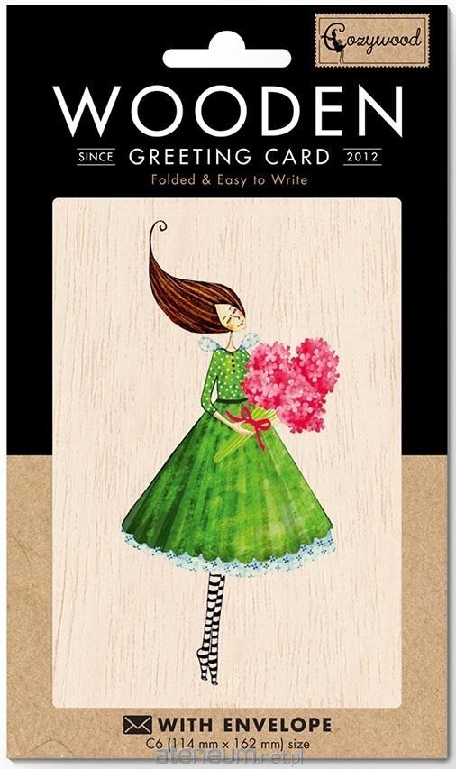 Karnet drewniany C6 + koperta Kobieta z dmuchawcem