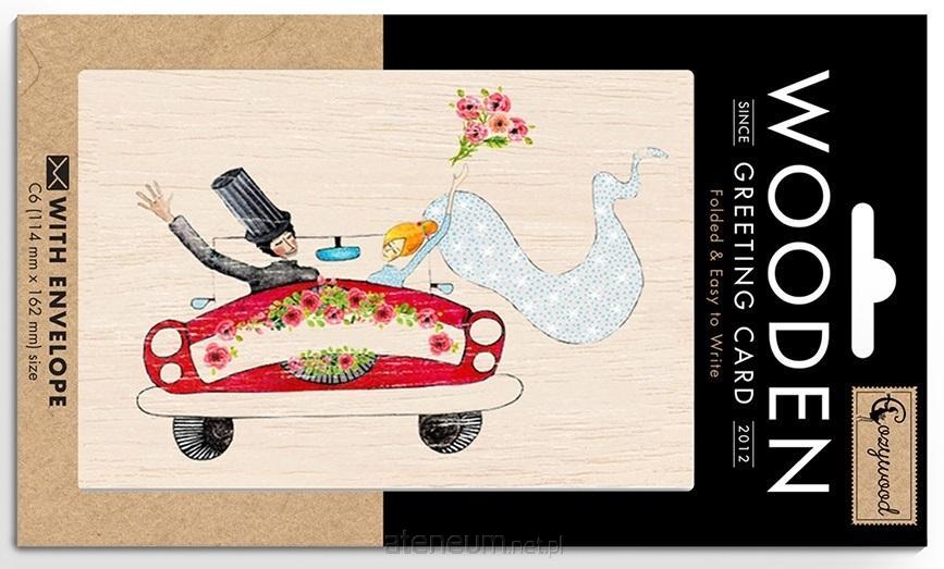 Drewniany karnet w formacie C6 z kopertą. Wyprodukowany na Litwie.