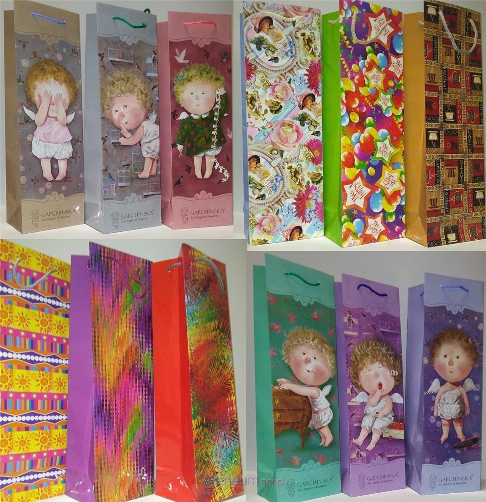 Torebka ozdobna pionowa BUTELKA duża. Dostępne różne wzory - wybór losowy.