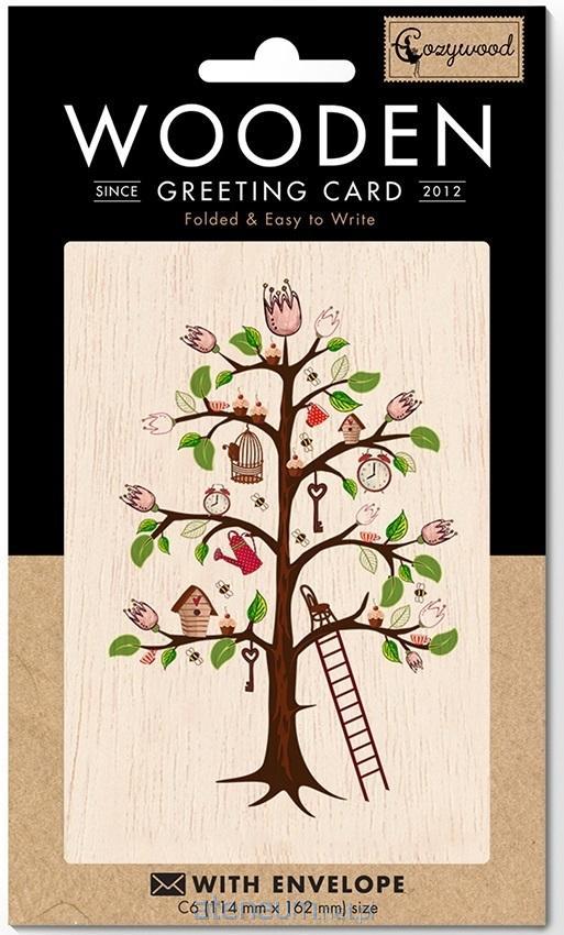 Drewniany karnet w formacie C6 z kopertą. Wyprodukowany na Litwie.