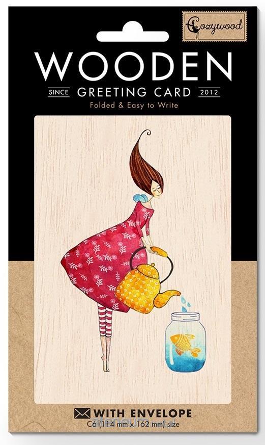 Karnet drewniany C6 + koperta Kobieta w kąpieli
