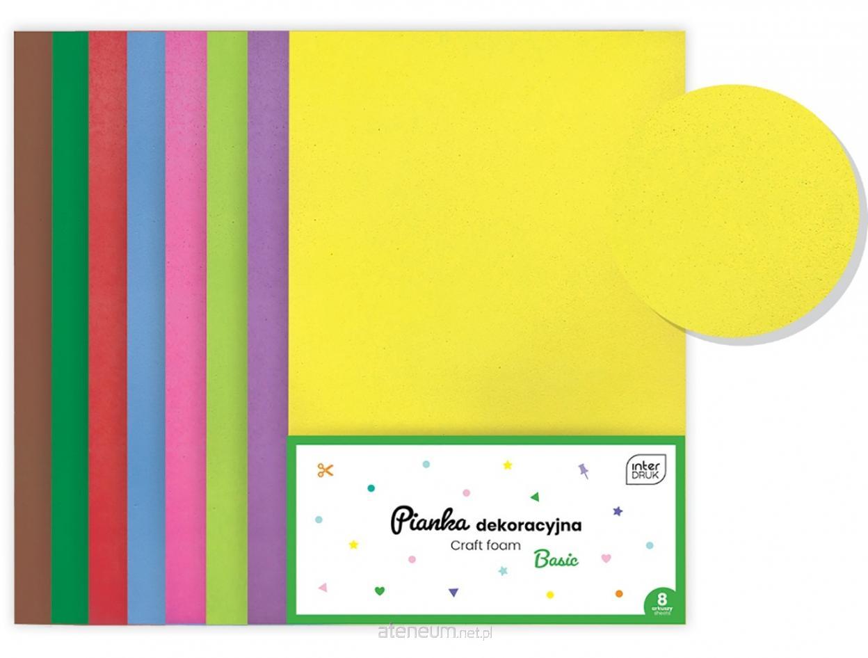 Opakowanie zawiera 8 arkuszy pianek w rozmiarze A4 w intensywnych kolorach.