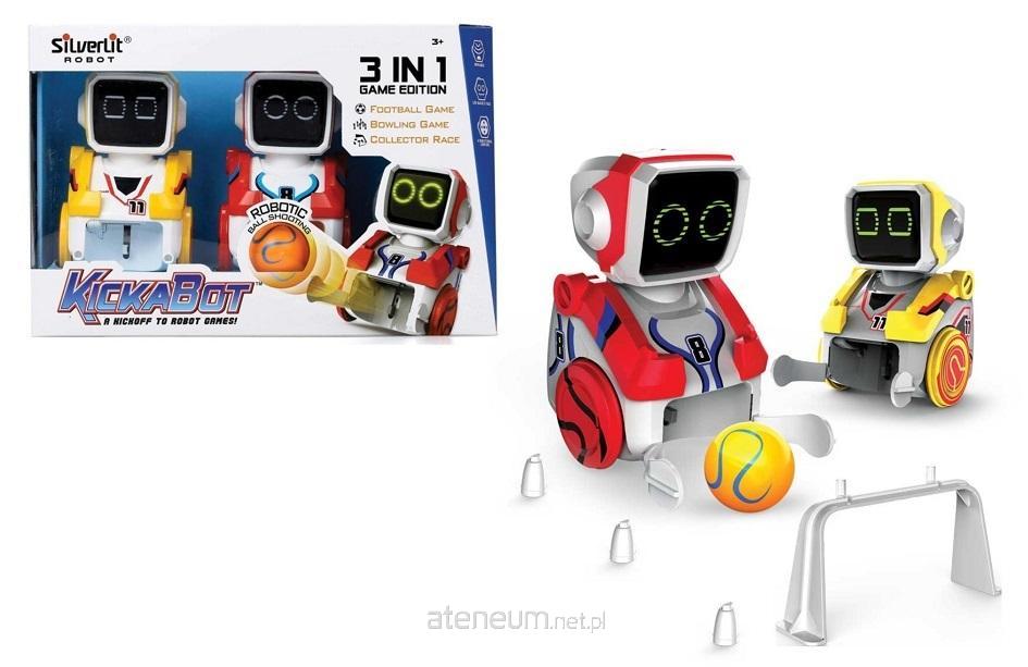 Powiększony zestaw Kickabot, w którym znajdziesz aż dwa roboty, 2 dżojstiki, 2 bramki, które po przymocowaniu do robotów mogą także służyć za spychacz do kręgli, piłkę do gry, 12 kręgli i 2 pary nóżek, po jednej dla każdego robota. Zaproś do zabawy kolegę, wybierzcie sami, w którą grę chcecie zagrać i zmierzcie się w sportowej rywalizacji! Steruj swoim robotem w 4 kierunkach i strzelaj do celu