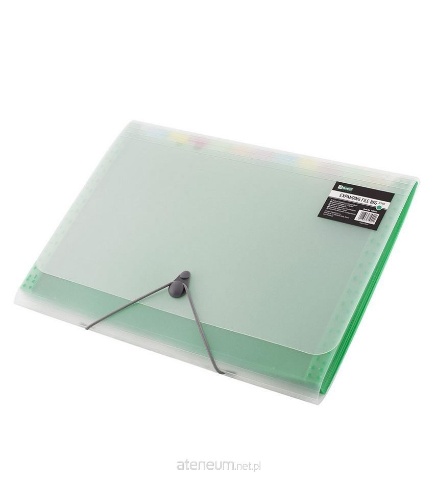 - rozmiar A4- teczka segregująca na dokumenty w formacie A4, zamykana na gumkę- 12 przegródek na dokumenty z wymiennymi etykietami do opisu zawartości