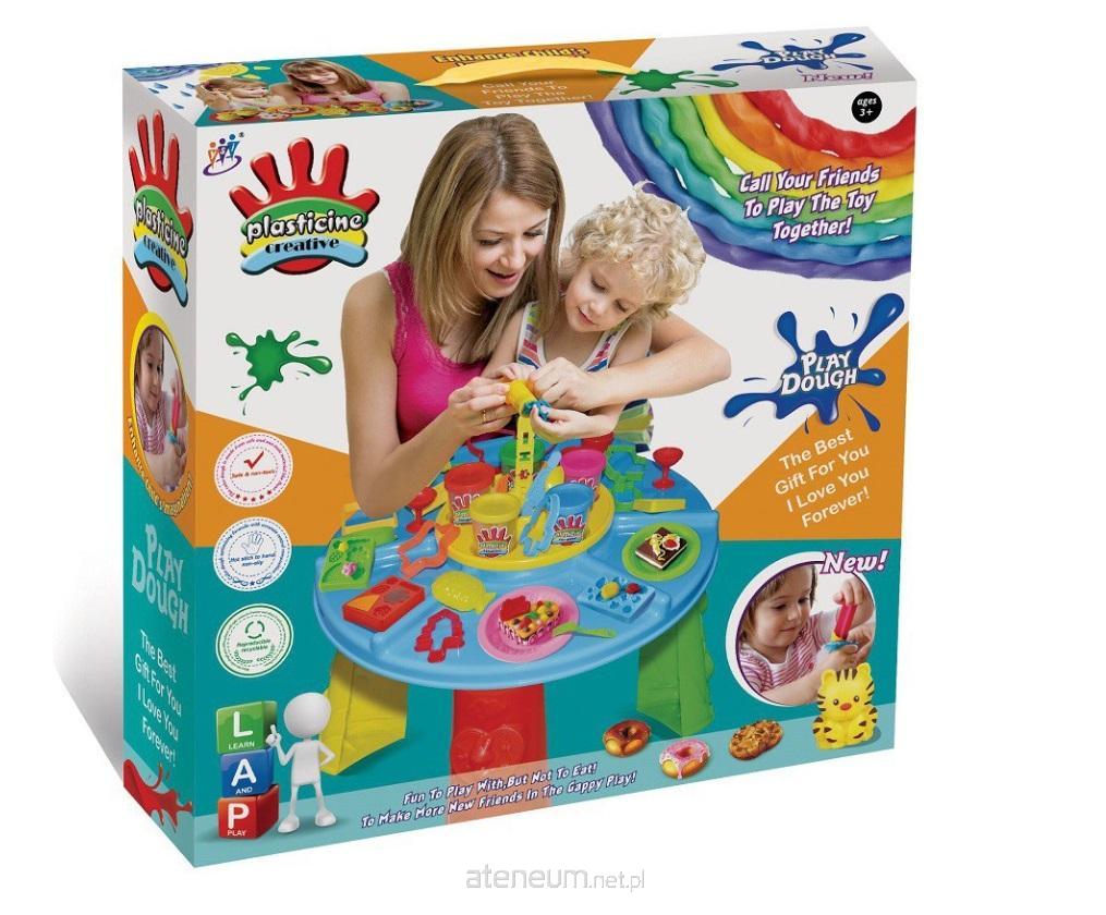 Kreatywny stolik daje mnóstwo możliwości zabawy! Maluch będzie mógł formować przeróżne kształty i smakołyki, naciskać, wyciskać masę, a także rysować! Dzięki funkcjonalnemu blatowi wszystko będzie miało swoje miejsce, a sama zabawa będzie niezwykle wygodna i przyjemna. Ten wspaniały zestaw zapewni mnóstwo frajdy wszystkim kreatywnym dzieciom, które uwielbiają wykonywać prace plastyczne. Stolik to świetny sposób na zabawę w domu i ogrodzie. Posiada on wiele przegród dla porządku. Zestaw zawiera wiele ciekawych akcesoriów zachęcających do kreatywnej zabawy oraz 5 kolorowych tubek z masą plastyczną: fioletowy różowy żółty zielony niebieski W skład zestawu wchodzą: stolik na stabilnych nogach 5 tubek z kolorową masą szereg foremek narzędzia do tworzenia i talerzyki. Duże kolorowe opakowanie idealne na prezent