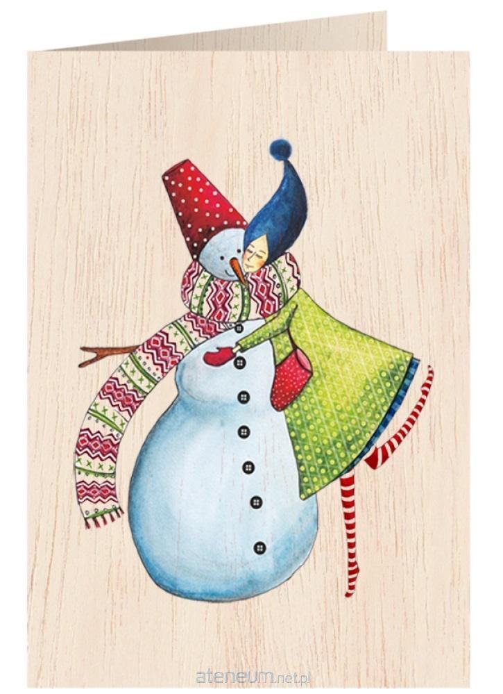 Karnet drewniany C6 + koperta Święta Kobieta Sanki