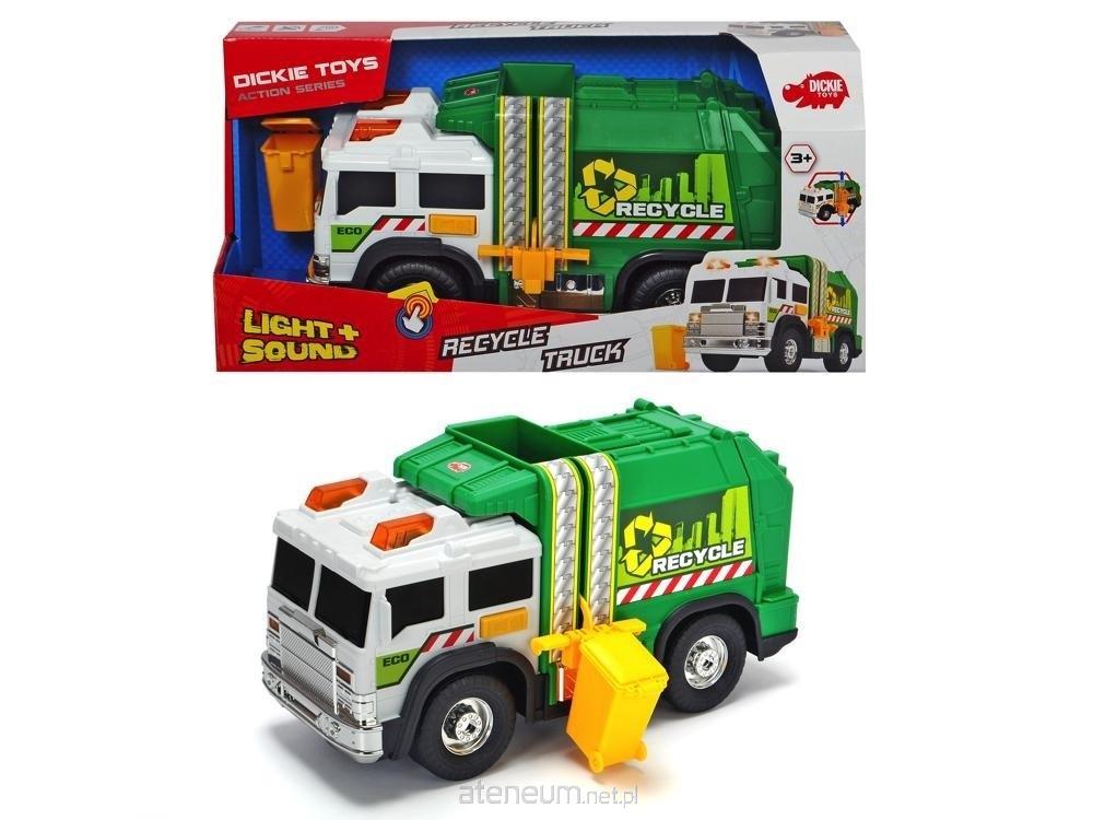 Śmieciarka zielona 30cm ze światłem i dźwiękiem i wyjmowanym pojemnikiem. Wymiary produktu: 40cm x 20cm x 15cm.