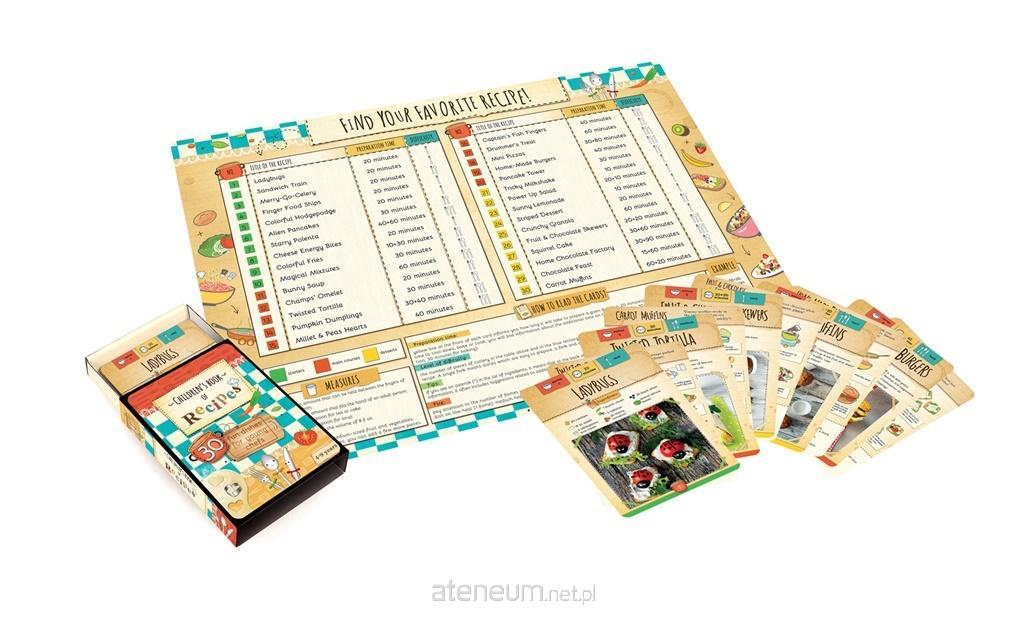 Pobudzające apetyt przystawki, smakowite dania główne i słodkie desery Gotuj z dzieckiem to 30 kart ze wspaniałymi przepisami wybranymi specjalnie dla dzieci. Twoje dziecko nie może się już doczekać na to, żeby wspólnie z tobą wejść do świata kuchni i rozpocząć kulinarną przygodę. Czas rozpocząć rodzinne gotowanie! Pyszne przepisy przygotowała dla was Joanna Mentel, dziennikarka i psycholog, założycielka warsztatów kulinarnych "Dzieciaki w formie", od lat promująca zdrowy styl odżywania i zarażająca dzieci entuzjazmem do gotowania. "Gotuj z dzieckiem" to: - rodzinna rozrywka: wspólne gotowanie i spożywanie posiłków to nie tylko świetna zabawa, ale również niezapomniane chwile spędzone razem, - zdrowe jedzenie: wprowadzaj od małego zdrowe zwyczaje żywieniowe, daj dziecku możliwość poznawania nowych potraw i smaków, - rozwój zmysłów: gotowanie i eksperymentowanie w kuchni pomaga rozwinąć zmysły smaku, węchu i dotyku, - trening umiejętności: specjalnie dobrane przepisy i rady pomogą twojemu dziecku rozwinąć wyobraźnię, kreatywność i cierpliwość, ale także praktyczne umiejętności planowania pracy, pomiaru czasu i arytmetyki. wersja angielska