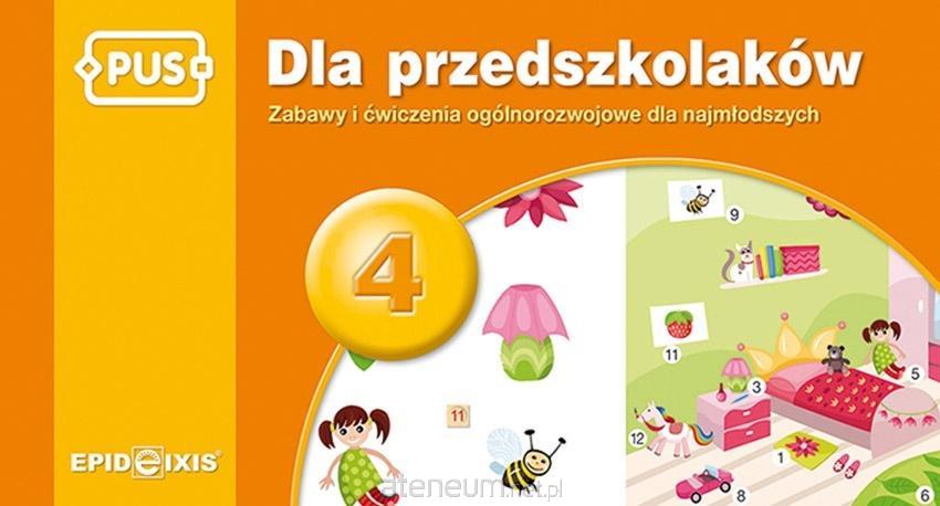Dla przedszkolaków 4. Zabawy i ćwiczenia dla najmłodszych to książeczka PUS należąca do mini serii Dla przedszkolaków i będąca kontynuacją wydanych wcześniej części 1 i 2. Ćwiczenia zawarte w tej książeczce wspomagają u najmłodszych doskonalenie sprawności umysłowych. Pomagają rozwijać spostrzegawczość, uwagę, pamięć, umiejętność analizy i syntezy wzrokowej; uczą porównywania, klasyfikowania i uogólniania. Są okazją do ćwiczenia logicznego myślenia oraz koncentracji, a to wszystko w formie dobrej zabawy. Dla przedszkolaków 4. Zabawy i ćwiczenia dla najmłodszych to książeczka pełna pięknych ilustracji, które zachwycą dzieci i zagadek, które skutecznie przyciągną ich uwagę. Można korzystać z niej zarówno w czasie zajęć w przedszkolu, jak i w gabinecie psychologiczno-pedagogicznym oraz w edukacji domowej. Rozwiązywanie kolejnych zadań przy jednoczesnym układaniu klocków w zestawie kontrolnym PUS mocno angażuje uwagę dziecka, a formuła PUS umożliwia mu samodzielną kontrolę poprawności wybranych odpowiedzi. Dobrze ułożony wzór kontrolny to dla dziecka jego osobisty sukces, który zachęca go do dalszych samodzielnych działań.