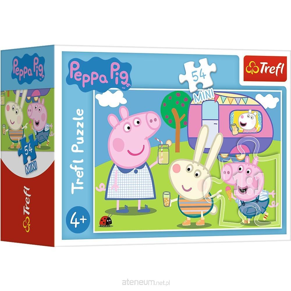 Układanka Wesoły dzień Świnki Peppy w wygodnym pudełeczku, które swobodnie zmieści się w dziecięcym plecaczku i na półce z zabawkami.