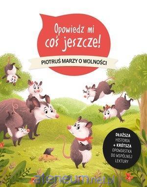 W rodzinie Oposów są państwo Oposowie oraz ich dzieci: Adaś, Jaś, Gosia, Piotruś, Eryk i Zosia. Dla Piotrusia tyle rodzeństwa to za dużo: za dużo hałasu, za dużo bieganiny, za dużo rzeczy, którymi trzeba się dzielić i za mało całusów od mamy! Postanawia zatem opuścić rodzinny dom. Po drodze spotyka Kasię, samotną córeczkę skunsów... Dla wszystkich, którzy wołają Opowiedz mi coś jeszcze! - wspaniała dłuższa historia + krótsza opowiastka, idealne do czytania przed snem.