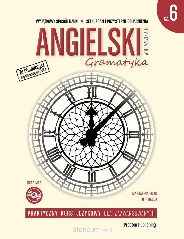 Jest to idealny suplement do regularnej nauki języka angielskiego oraz pomoc w przygotowaniu się do egzaminów. W prosty i jasny sposób przekazuje wiedzę na temat konstrukcji gramatycznych i zachęca do ćwiczeń. To także doskonały materiał wspomagający naukę zarówno dla nauczyciela, jak i dla ucznia.Szósta część kursu do praktycznej nauki języka angielskiego, która łączy w sobie naukę gramatyki oraz umiejętności mówienia na poziomie zaawansowanym. Drugie, poszerzone wydanie wzbogacone zostało o kolejne zagadnienia i kurs audio w dwóch wersjach językowych: polsko-angielskiej oraz angielskiej.