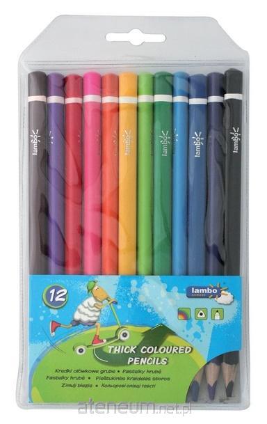 Kredki ołówkowe typu Jumbo 12 kolorów z grubą obudową i grafitem aż 5mm, o trójkątnym kształcie zamknięte w przezroczystym etui. Kształt ułatwia pewny uchwyt i zapewnia komfort rysowania. Wszystkie kredki są oryginalnie zatemperowane i gotowe do użycia. Intensywnie nasycony pigmentem grafit zapewnia żywe i jasne kolory.
