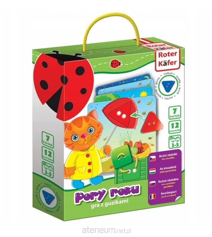 Edukacyjna gra z guzikami Pory roku to zestaw trójwymiarowych magnesów oferujący możliwość zapoznania się z porami roku, ich cechami charakterystycznymi, a także poznawanie podstawowych figur geometrycznych i kolorów. Układaj magnetyczne puzzle na specjalnej tablicy lub na innej powierzchni. Obejrzyjcie karty z porami roku i opowiedz dziecku o każdej z nich. Zadaniem dziecka jest przyszycie specjalną sznurówką guzików do każdej z kart dopasowanych kolorem i kształtem. Wytłumacz dziecku, które z przedmiotów/postaci mają podobny kształt do figury geometrycznej, czy pasują kolorystycznie i dlaczego. Podczas procesu dopasowywania dziecko nie tylko zdobędzie wiedzę o porach roku, ale rozwijać będzie umiejętności motoryczne, pamięć, logiczne myślenie, spostrzegawczość, zdolność do porównywania i zestawiania, myślenie twórcze, a także gust artystyczny. Dzieci będą bardziej uważne, dokładne i wytrwałe. Magnesami można też bawić się tworząc wspólnie coraz to nowe historie, rozwijając w ten sposób zasób słów i wyobraźnię. Gry magnetyczne są nie tylko zabawne i ekscytujące, ale również wygodne! Baw się w drodze, na pikniku wszędzie tam, gdzie zechcesz! W zestawie znajdują się: - karty z porami roku 4 szt., - kolorowe karty figur geometrycznych 3 szt., - guziki w różnych kształtach i kolorach 12szt., - barwne sznurki do szycia 4szt., - zasady gry. Grubość magnetycznych pianek: 4mm
